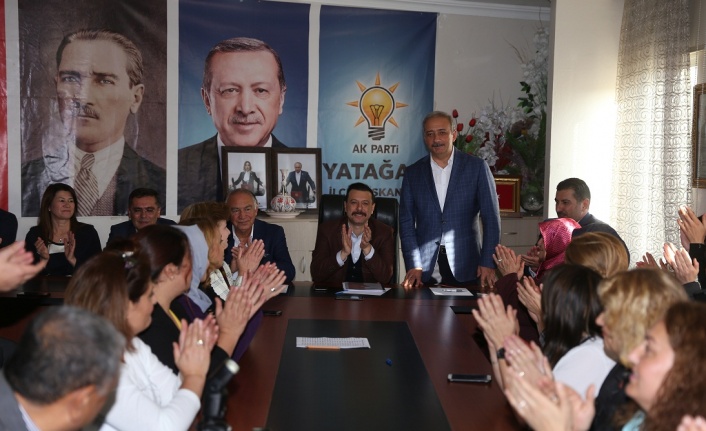 İlçe başkanlığındaki toplantıda konuşan AK Parti İl Başkanı Mete, “Türkiye, kritik bir dönemden geçiyor. Daha önce de partimizde bakanlık yapmış zat-ı muhteremin parti kurduktan sonraki hallerini gördük. Şuanda CHP’de sıradan bir milletvekili görevinde bulunuyor. Biz, Türkiye’nin lider takımı olarak önümüzdeki maçları ve insanların gönüllerini kazanmayı hedefleyeceğiz. Bunu hizmetlerimizle ve davranışlarımızla yapacağız. Bu kongre döneminde teşkilatımız görüşmeler olacak, Ankara’dan gelecekler, belki temayül yoklaması yapılacak. Belki 2-3 aday çıkacak ama bu adaylar Ankara’ya çağrılır ve tek aday üzerinde uzlaşılır. Biz de o adayın arkasında dimdik duracağız. O yüzden Yatağan’ın, seçimlerde gösterdiği başarıyı daha da pekiştirecek bir çalışmayla inşallah düzgün bir aday belirlenmesi noktasında hareket edeceğiz. Ali başkanım, çok başarılı bir ilçe başkanlığı yapmıştır. Onun benimle arasında olan bir muhabbetle Ali başkanım farklı bir göreve talip olmuştur. Önce Allah nasip edecek, sonra da genel merkez takdir ederse belki ben de devam edersem, Ali başkanımla ilde beraber çalışırız” diye konuştu.