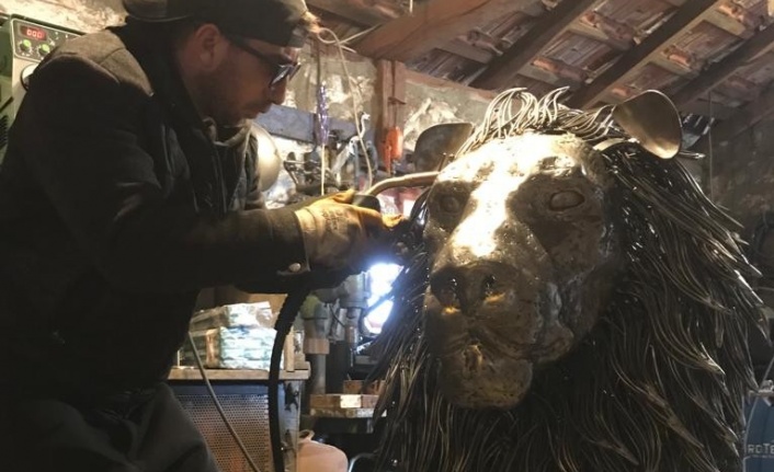 Muğla’nın Bodrum ilçesinde atık metal malzemelerden heykeller yapan Metalart Atölyesi, bu kez bir aslan heykeli yaptı. Heykeli, Galatasaray-Barcelona maçı gününde tamamlayan atölye çalışanları, 1 tonluk heykelin Galatasaray’a uğurlu geleceğine inandıklarını söylediler.