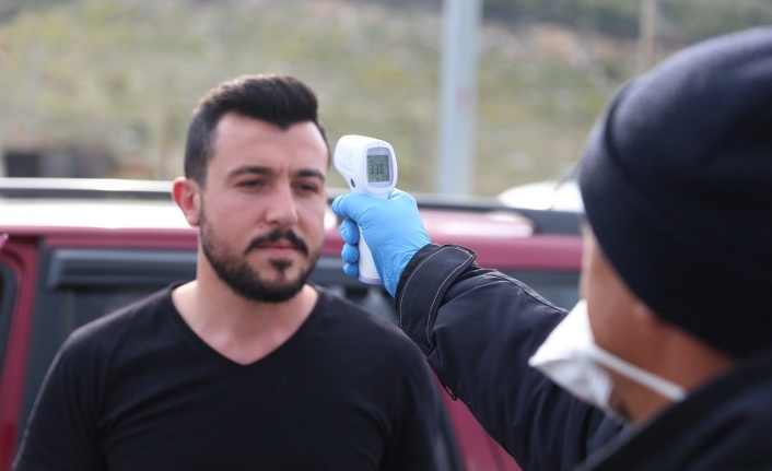 Yatağan ilçesinde, koronavirüse karşı alınan tedbirler kapsamında şehre giriş- çıkışlarda kurulan uygulama noktalarında araç sürücüsü ve yolcuların ateşleri ölçülüyor.