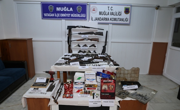 Yatağan ilçesinde, emniyet ve jandarma ekiplerinin ortak düzenlediği operasyonda çok sayıda kaçak silah, silah parçası ve tütün ürünleri ele geçirildi.