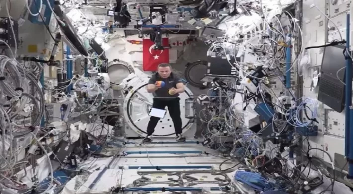Türkiye’nin ilk astronotu @TURKastro; mikro yer çekimi ortamında cisimlerin hareket dinamiklerini incelediği, dönme ve atalet durumu üzerine keyifli bir video çekti. ????????????????