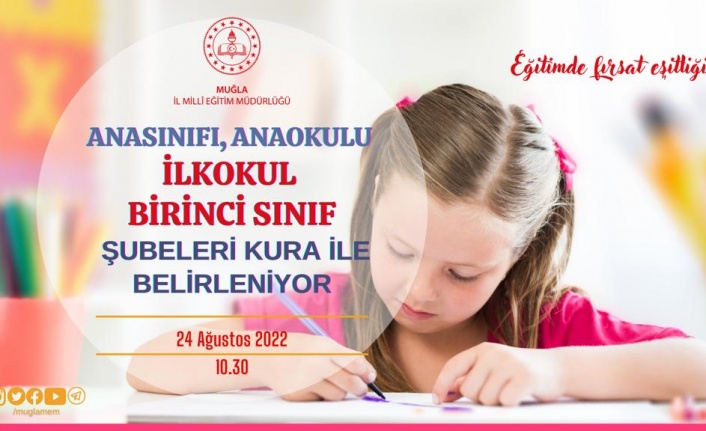 Yeni eğitim öğretim yılında Muğla ili genelinde tüm resmi okullarda İlkokul 1. Sınıf, Anasınıfı, Bağımsız Anaokulu ve Uygulama anasınıflarına yeni kayıt olan öğrencilerin şube ve öğretmenleri, okullarında yapılacak "kura" yöntemi ile belirlenecek. Kuralar, her sene olduğu gibi bu yılda tüm ilçelerde eş zamanlı olarak yapılacak. 24 Ağustos 2022 Çarşamba günü saat 10.30’ da gerçekleştirilecek kura işlemi okullarda velilerin huzurunda yapılacak.