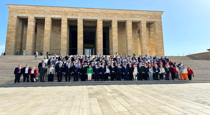 Türkiye Cumhuriyeti’nin kurucusu Gazi Mustafa Kemal Atatürk’ü ebedi istirahatgahında ziyaret eden Muğla Büyükşehir Belediye Başkanı Ahmet Aras, ilçe belediye başkanları Aslanlı Yol’dan yürüyerek Atatürk’ün mozolesinin önüne geldi. Mozoleye çelengin bırakılmasının ardından saygı duruşunda bulunuldu.