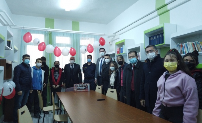 Kurdele kesiminin ardından Kaymakam Onur Kökçü ve Belediye Başkanı Mustafa Toksöz okul kütüphanesi için öğrencilere kitap setleri hediye ettiler.