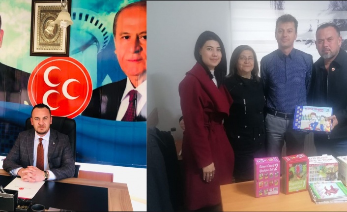 Yatağan MHP İlçe Başkanlığı her ay düzenli olarak köy okullarındaki öğrencilere verilmek üzere Yatağan Milli Eğitim Müdürlüğüne kitap bağışında bulunuyor.